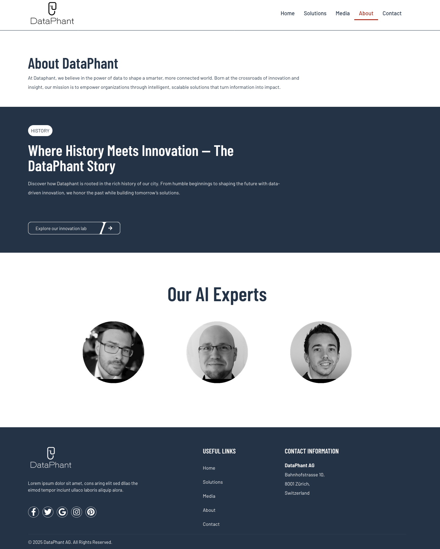 Chaque section du site a été pensée pour intégrer une forme de mouvement, non pas comme un simple effet visuel, mais comme un moyen d’engager l’utilisateur et de donner vie à l’univers de Dataphant. L’expérience s’ouvre sur une vidéo animée qui introduit le produit avec douceur et fluidité. Au fil du défilement, les titres apparaissent progressivement, comme s’ils se révélaient au rythme de la découverte. Les logos des entreprises témoignantes s’animent subtilement, passant du gris à leurs couleurs d’origine, tandis que les portraits des professionnels et leurs citations s’illuminent à leur tour. Les cartes d’articles effectuent une rotation en 3D, créant l’illusion d’un feuilletage, et le pied de page se clôt sur une animation inspirée des machines à écrire anciennes, ajoutant une touche nostalgique et chaleureuse. Ensemble, ces micro‑interactions composent un langage de mouvement cohérent, narratif et vivant, qui rend l’expérience plus immersive et renforce la personnalité accueillante de la marque.